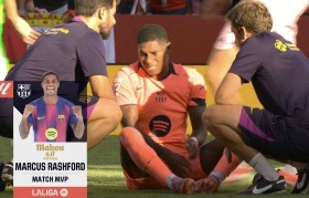 曼联出租给巴萨的拉什福德打入了个人的第一...